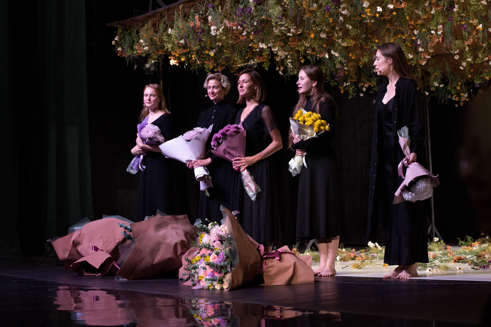 Дальнейшее обсуждение спектакля после шума оваций начиналось непривычно тихо и осторожно: выксунцы выходили молчаливо-потрясённые. Лишь после знакомства с биографией Чингиза Айтматова зрители понемногу раскрылись. Говорили о войне и памяти о ней в ДНК каждого, о трагедии страны на примере одной семьи, о счастье, которое было, но которого уже не будет. Обсуждали актрис с их интонациями; рассмотрели цветы не внизу, а вверху; высказали мысль о «золотом счастливом веке» в жизни нации; обсудили важность будней: пахать, сажать, жать, печь.