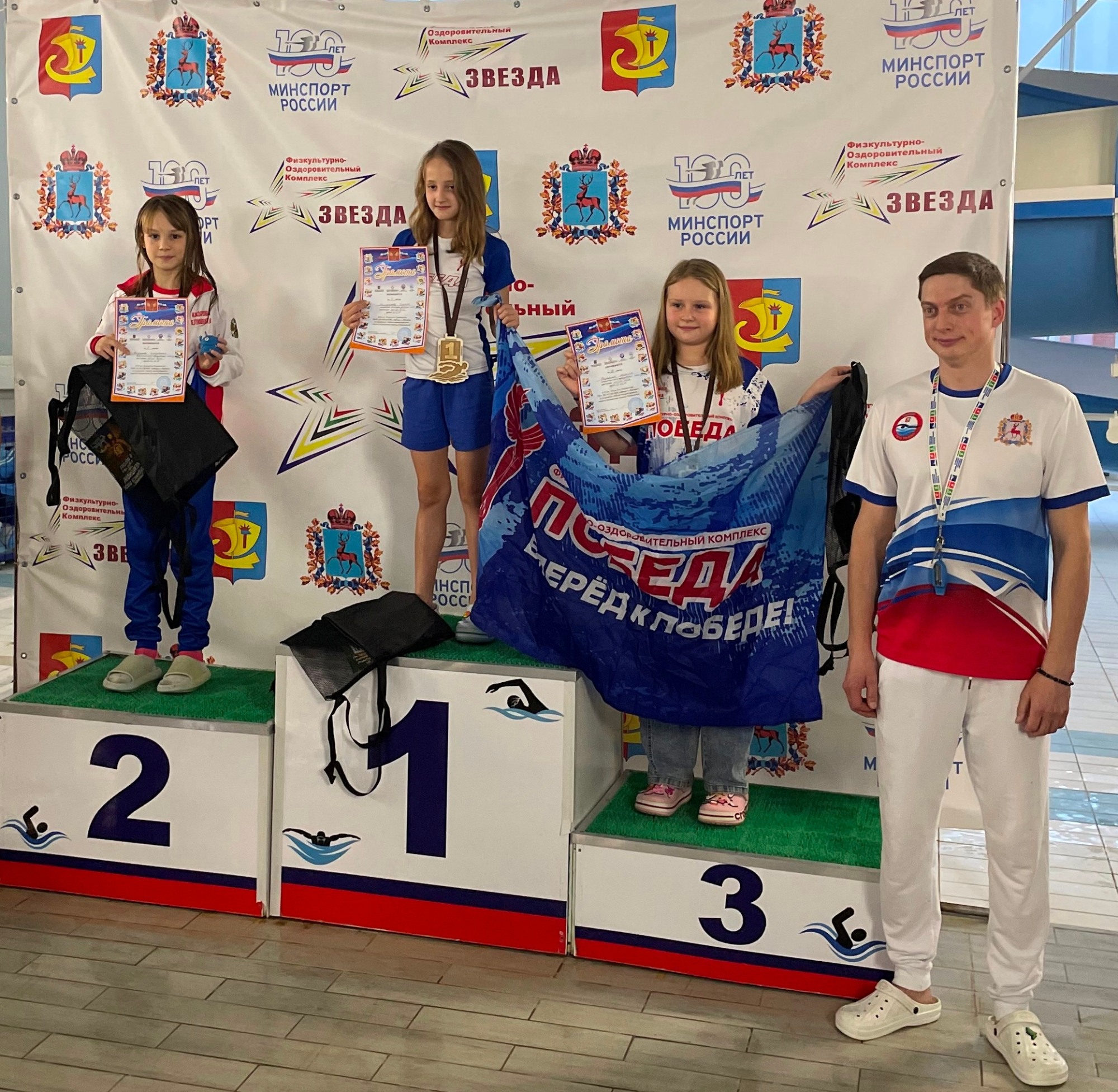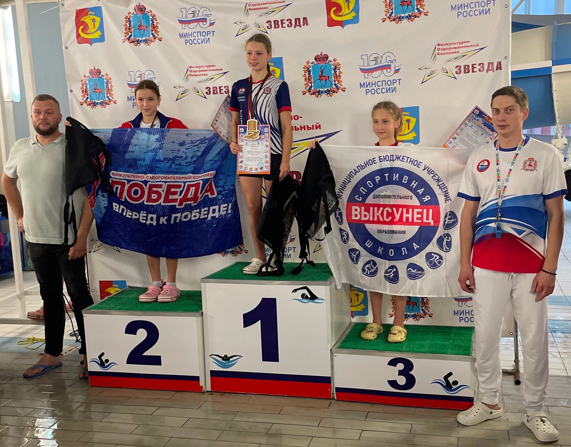 🥉 Девочки (Выкса-1, 2014–2017 г.р.) — третье место (4×50 м в/ст).