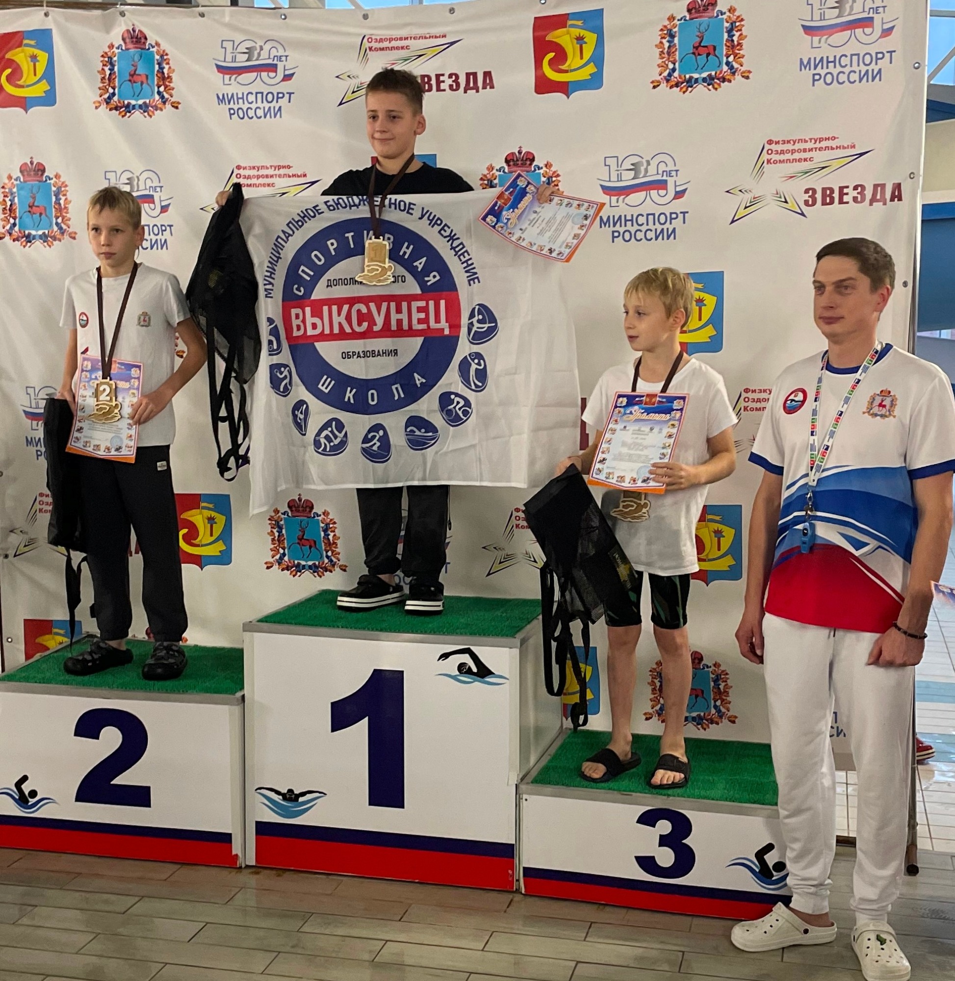🥉 Мальчики (Выкса-2, 2014–2017 г.р.) — третье место (4×50 м в/ст).