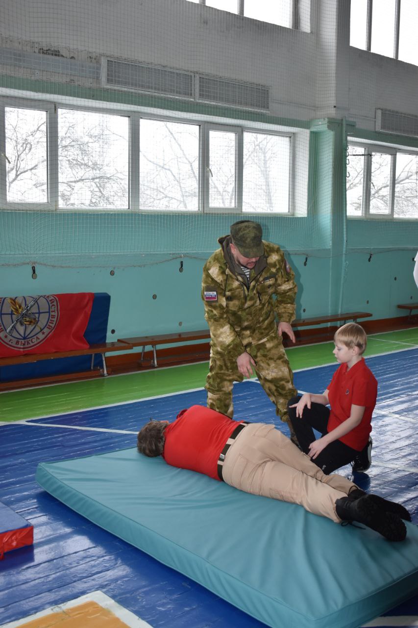 31 января в школе №3 города Выкса прошло практическое занятие по оказанию первой помощи. Ветеран боевых действий на Северном Кавказе Дмитрий Елизаров провел обучение участников движения ЮнАрмия (руководитель Владимир Решетняк) технике сердечно-легочной реанимации (СЛР).