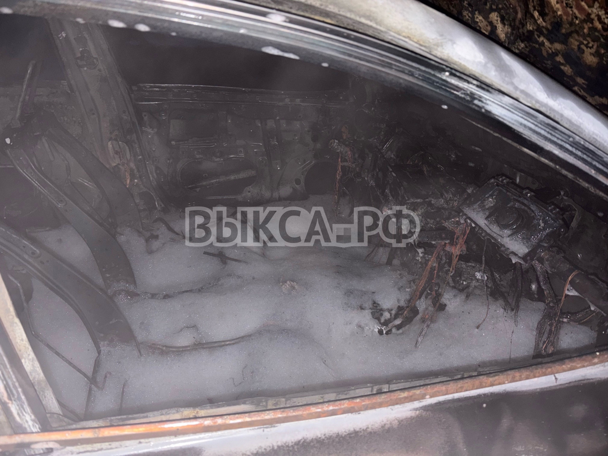 После удара оба автомобиля загорелись. Toyota Camry выгорела полностью, Kia Rio — частично.