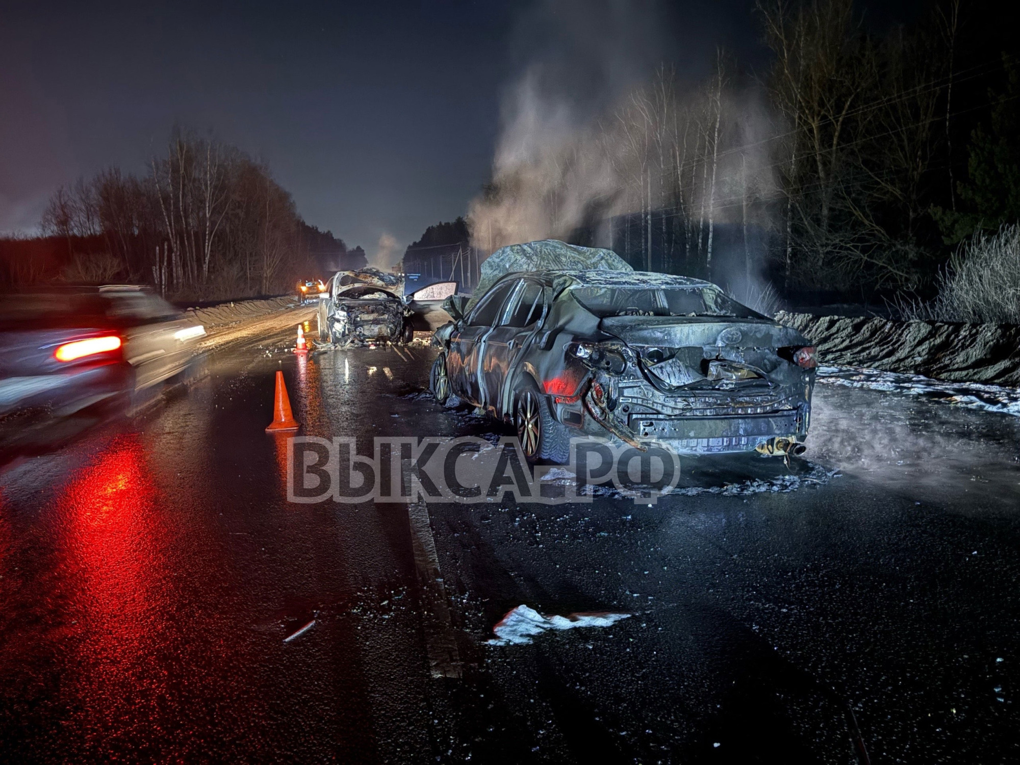 Два человека пострадали в ночном ДТП на трассе Выкса—Навашино: автомобили загорелись после столкновения
